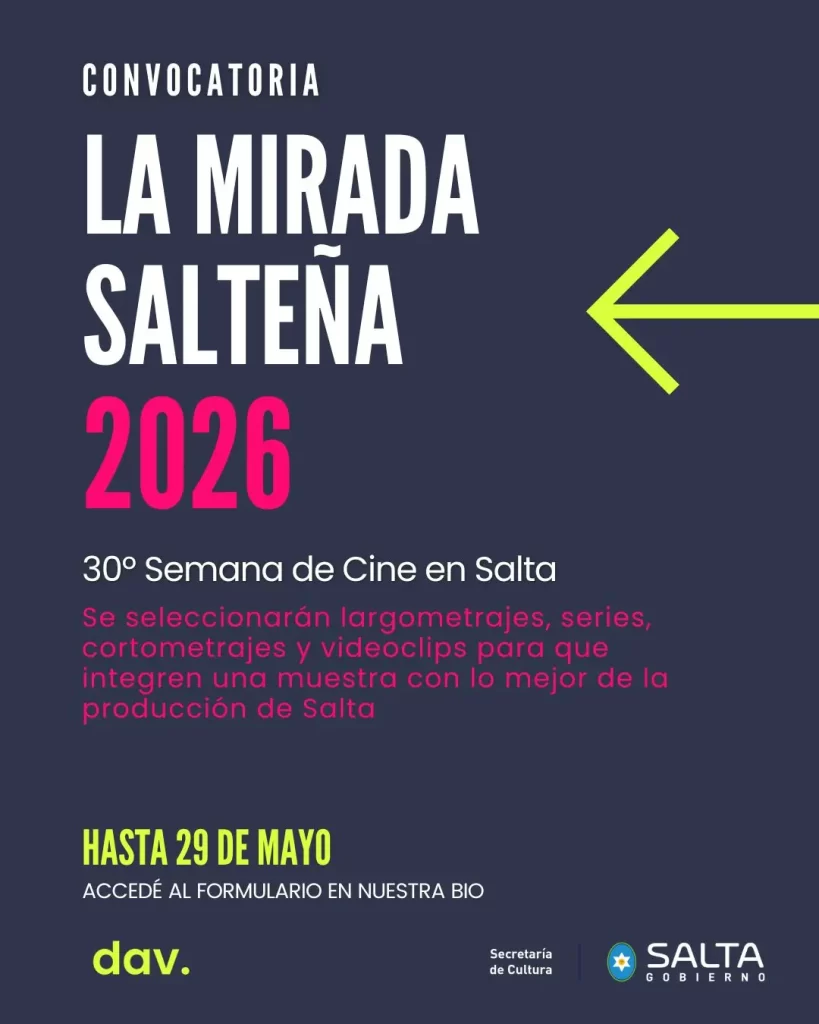 La invitación está dirigida a realizadores audiovisuales de toda la provincia que deseen participar en la sección “La mirada salteña”, un espacio que, año tras año, se consolida como una plataforma clave para la visibilización y difusión del cine local.
